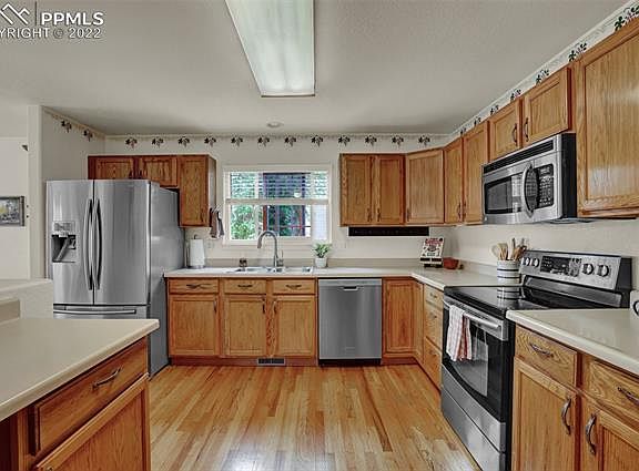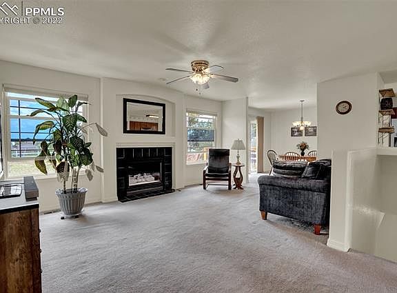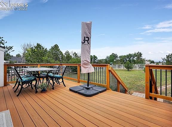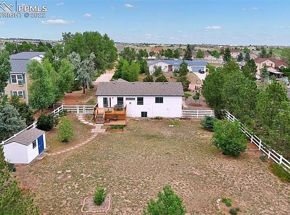 Immaculately maintained, move-in ready rancher in Paint Brush Hills with no HOA! Situated on nearly a 1/2 acre of land, this home features great living space both inside and out! Drive up the home and notice the pristine landscaping in the front yard! A large covered front porch welcomes you and you will know you are home-sweet-home! True wood flooring at the entry extends into the spacious kitchen that features solid countertops, wood cabinets, stainless steel appliances and a pantry for storage! The living room has a gas fireplace to enjoy on the chilly Colorado evenings, a ceiling fan to stay cooler in the warmer months and 2 large windows overlooking the backyard! The dining area adjacent to the kitchen and living areas has a walk-out to the 2nd of 3 outdoor deck areas - all of which are constructed of low-maintenance composite flooring! The primary bedroom is on the main level and has a private en-suite with a walk-in shower. Two additional bedrooms and another full bathroom complete this level. The fully-finished basement provides more living space and has a large recreational room with a pool table to enjoy with family and friends! There are 2 more bedrooms, another full bathroom and a laundry area with a washer and dryer that stay! The fully-fenced backyard has another deck to enjoy and plenty of space for outdoor fun and games! Upgraded Anderson windows, a 2-car attached garage with shelving and tool holders, radon system, sump pump, window coverings and treatments, and a storage shed are just some of the extras this home has waiting for you! Plenty of extra parking available! Come and fall in love today!