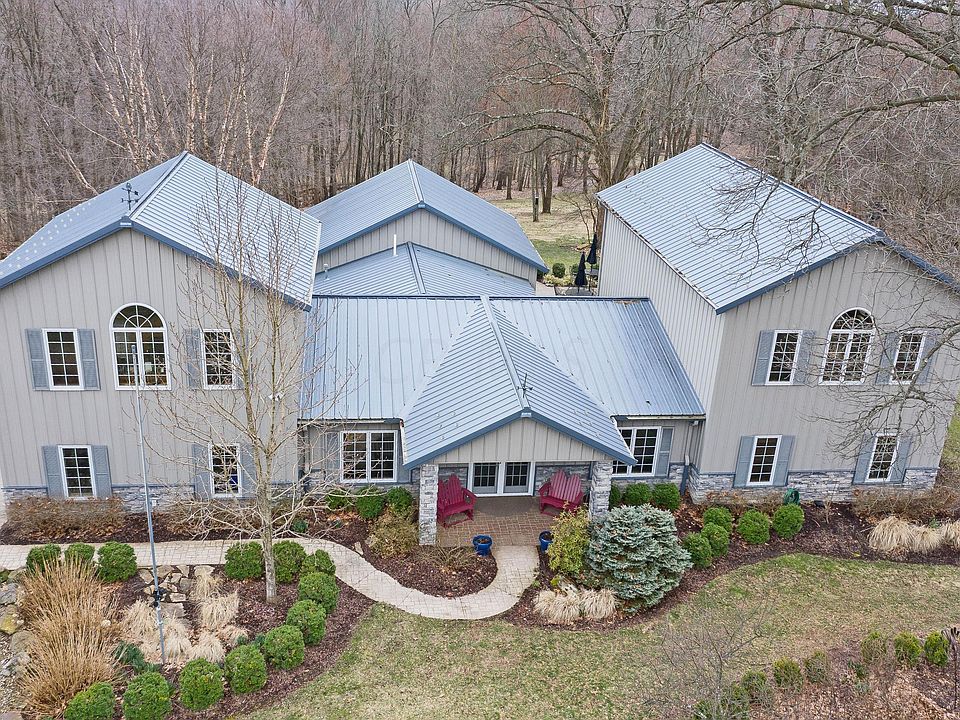 INCREDIBLY SCENIC ~70 ACRE PARADISE W/ROLLING TERRAIN, TOWERING TREES, CREEK, RAVINES & NATURAL SPRINGS. PERFECT FOR HUNTERS, BIRD WATCHERS, CAR OR HORSE ENTHUSIASTS W/FUTURE PASTURE AREAS & TRAILS! UNIQUE & SPACIOUS STEEL & STONE HOME W/~4,800SF OF FNSD SPACES INCLUDING AN OFFICE ABOVE THE BARN. SLATE & WOOD FLOORS. 1ST FLOOR DEN (POSS. 5TH BR). EXPANSIVE 1ST FLOOR OWNER'S SUITE W/WIC & PRIVATE SHOWER BATH. GIANT GREAT RM HAS WOOD PLANKED CATHEDRAL CLNGS, RADIANT HEATED FLOORS, 18 X 10 ENDLESS POOL & WALKS OUT TO PRIVATE PATIO. 2 UPPER LEVEL BONUS ROOMS/BR SUITES. ~5,000SF POLE BARN/WORKSHOP IS HEATED W/OFFICE & 1/2 BATH. 16 X 42 CONCRETE BUNKER UNDER BARN. ''LIVE OFF YOUR LAND!'' ADDTL 5 ACRES AVAILABLE TO PURCHASE FOR AN EXTRA $100,000.