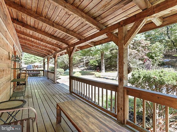 Nestled in Gambrill Mountain this log home is offers rustic charm with plenty of privacy. When entering the private driveway you are greeted with an inviting front porch welcoming you home. The home offers 5 bedrooms and 3 full bathrooms. The primary bedroom is located on the main level of the home. The great room offers 2 story ceilings with a cozy wood burning stove. The dining area is located off the kitchen and opens to the great room and also offers sliding glass doors to the deck. There is an additional bedroom, one full bathroom and the laundry room on the main level as well. The upper level offers 3 bedrooms, 2 full bathrooms and an open loft area. The lower level is partially finished and includes a home office, store room, rec room and a workshop that with walkout access to your yard. Do not miss out on this private 5.93-acre oasis, where a filtered in-ground pool awaits, surrounded by lush trees and a tranquil stream. Located near a Gambrill State Park, adventure is just a stone's throw away, with hiking trails and nature at your doorstep. Experience the beauty of rural living while being just minutes from local amenities. This home is a true retreat, offering peace, privacy, and endless possibilities.
