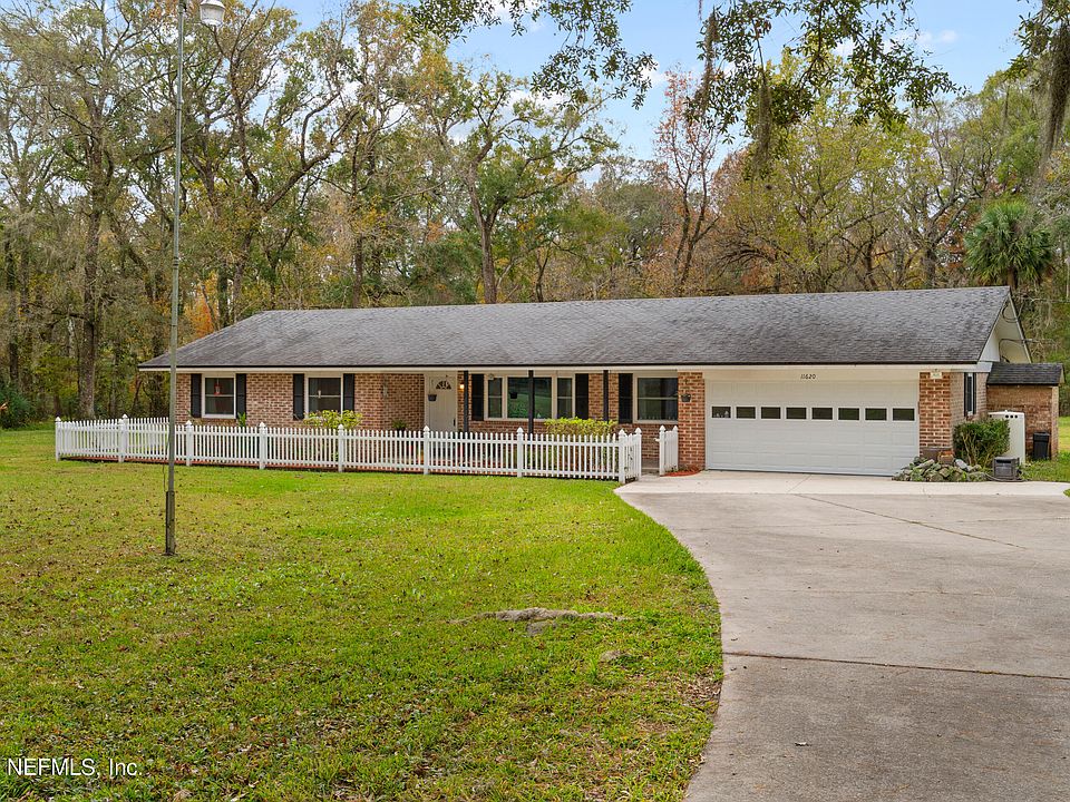 Ready for country living in the city? This gorgeous home checks the boxes and is waiting to welcome you! After entering through the automatic front gate, you will be drawn in by the feeling of serenity that awaits. Beautifully updated, this home sits on a 3.5 acre lot with a full concrete driveway, and offers a wide front porch with a swing that overlooks beautiful flower beds, open floor plan with tile flooring throughout, spacious kitchen with stainless steel appliances including a double-oven range, and ample cabinets, large bedrooms with nice closet space, an open patio, and so much more. In addition to the 2-car attached garage, there is a detached garage or workshop that has an attached carport. Be sure to see Supplemental Remarks for additional features.