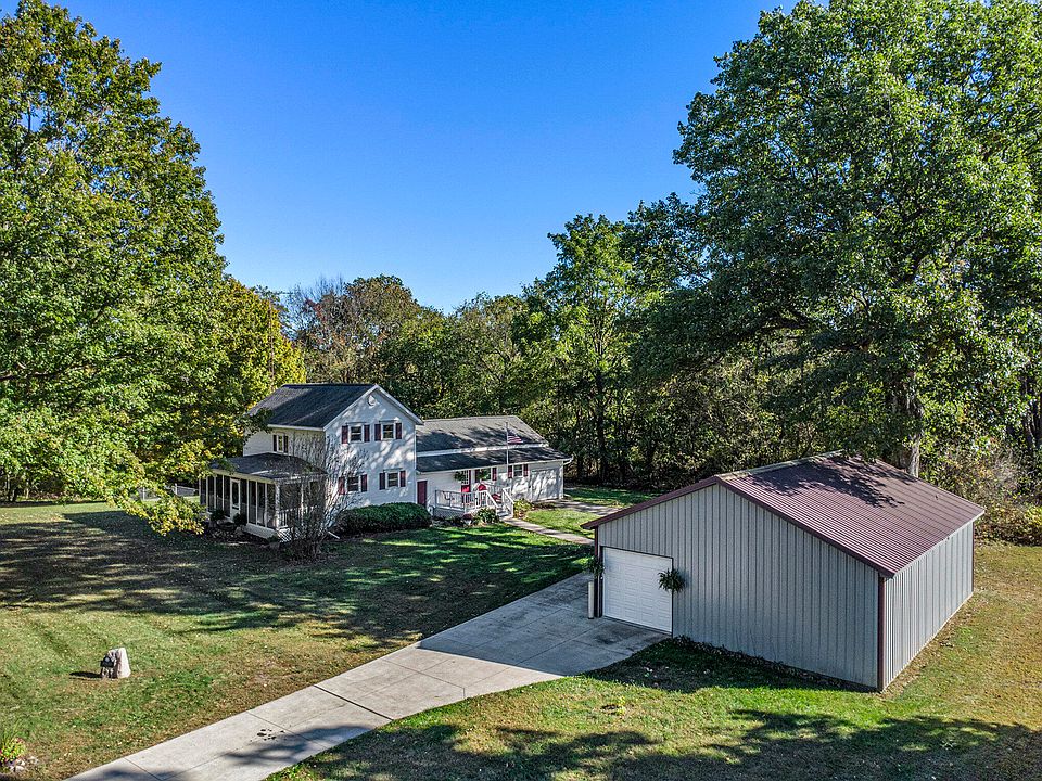 Fabulous farmhouse with acreage! This fully updated home is nestled on 2 wooded acres and features a main floor primary bedroom plus main floor ''spa'' bathroom and laundry! Step in tiled shower, soaking whirlpool tub, and plenty of space to relax. Large country kitchen with dining area and sliders to private deck. Open and light living room walks out to a cozy screened front porch with an old style swing for quiet evenings. Newer mechanicals and Generac whole house generator. 30 X 40 pole barn with electric and water. Plenty of space for 3 + cars, toys, workshop, or hobby space. Spacious Michigan basement is bright and dry - great for storage. This one is a gem - great value in a beautiful country setting!
