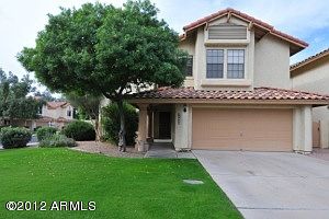 This beautiful corner lot home has many upgrades to include slab granite in the kitchen, tile floors, Separate tub/shower in MB w/ walk-in closet. Dual A/C zones. Desert landscaping (front yd maint. by HOA), large, open covered patio. Community pool just down the private, dead-end street. This home has 2 new A/C units, new hot water heater and new microwave. Minutes to freeways, shopping, dining, and more.