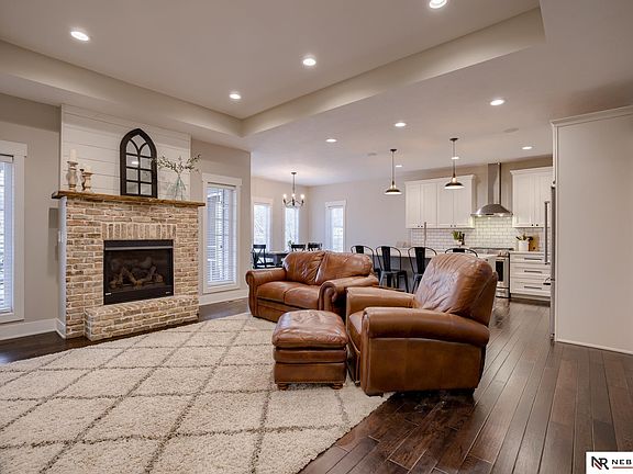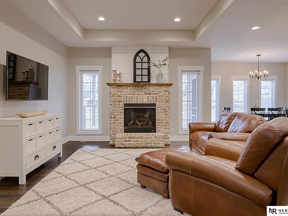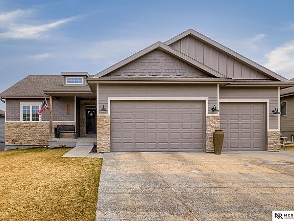 CONTRACT PENDING -- Nearly NEW Gretna ranch backs to HOA green-space. You'll love the open main floor with 9' ceilings & plenty of natural light. Full custom kitchen with granite counters, high-end appliances, glass backsplash and top tier fixtures. Dining room has wrap around windows and opens to covered 14 X 12 deck to enjoy the open space behind your new home. Primary suite with vaulted ceilings, 5 piece bath, and large walk-in closet. The basement has been finished with a 4th bedroom, 3/4 bath, 2nd kitchen (bar) and 2nd dining space, craft room and plenty of open space for your needs. GREAT for entertaining, play space, man cave! Plenty of storage (36 X 7 room) and storm shelter or more storage (14 X 7). AMA.