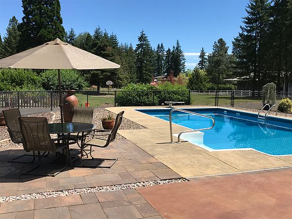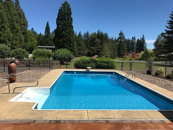 Spacious custom built home, updated and tastefully remodeled. Vaulted ceiling, hickory and tile floors, Custom cabinets, granite counters, upgraded appliances. Fenced in-ground pool. Property is entirely flat/usable and nicely fenced. 5 stall horse barn +tack rooms +2nd storage bldg. Room for toys. Garden area + fruit trees. Ideal horse/large animal property. Towering Redwoods skirt this serene, private setting. Open 3/10&11 1-4