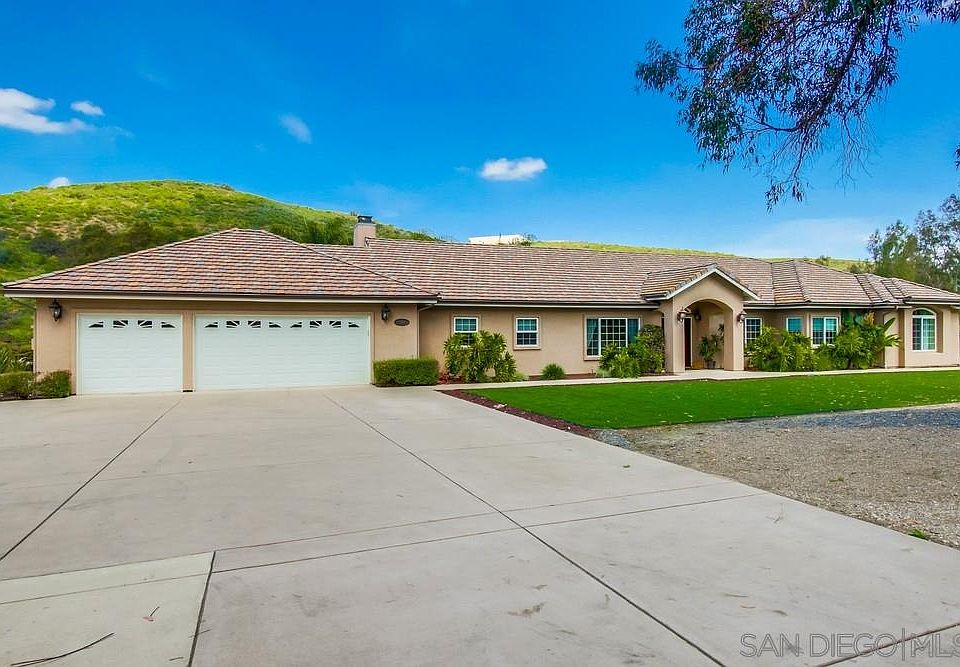 Offered at $1,175,000-$1,225,000. Spectacular, custom, single story estate nestled in private Poway neighborhood on an awesome 6 acre lot. Features include gourmet kitchen with GE Monogram professional range w/restaurant style hood, rich granite counter tops & breakfast bar. Lavish master suite w/ his & her basins, extra make up vanity, large soaking tub & separate shower & sizable walk-in closet. Backyard is an entertainers delight with huge patio, built-in BBQ & gazebo & stunning views. See supplement.