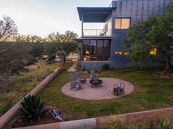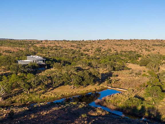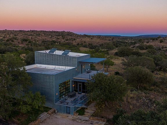 Modern Texas ranch home with industrial look built by Escobedo Construction in 2011 situated on 163.8 acres. 3BR, 3.5BA, two story 1,700 sqft living space with another 1,500 sqft conditioned garage/shop/game room space. Construction consists of steel super structure with weathered exterior zinc cladding which is low maintenance and fire resistant. A few features include 22,000 gal rain water collection, radiant heated concrete floors, concrete counter tops with commercial grade appliances. Glass Nanawall system between kitchen and solarium. Large windows throughout the home.