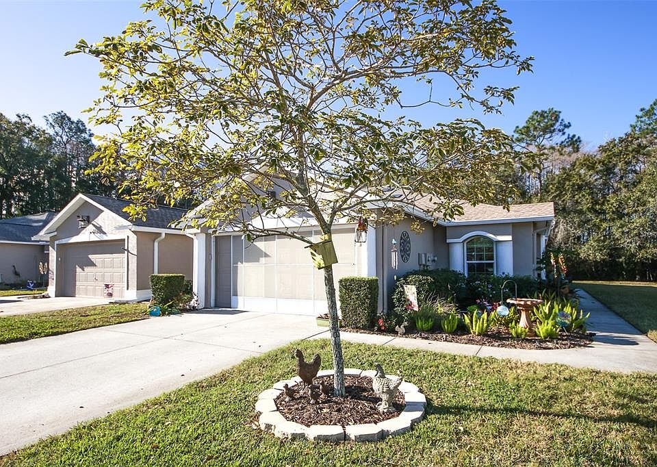 Welcome Home! Everything you have been searching for at a fantastic price. Updated maintenance free villa on a wonderfully private, wooded lot. This home offers an open floor plan with an expansive living/dining great room with vaulted ceilings. There are 2 large, split plan, bedrooms, primary bedroom has ensuite bathroom with new one on a kind tile flooring, new taller cabinets with granite countertops, new tile backsplash & new shower tile, 2nd bathroom also has granite countertop and new shower tile. The kitchen has new cabintry, granite countertops, glass back splash and a moveable island. Walk in pantry holds all your neccessities. Laundry closet hides full size stacking washer and dryer. Cozy Florida room overlooks the wooded back yard. Several new PGT windows. New HVAC in 2018. Community recently replaced the roof and painted the exterior of the villas. Extra storage cabinets in the 2 car garage. New tankless hot water heater. Well maintained 55+ golf course community that allows pets. Community fees cover Lawn, sprinklers/lawn watering, Spectrum cable and internet, trash & recycling, exterior paining, roofs plus recreational facilities including a state of the art clubhouse with game rooms, craft rooms, pool tables, library, bocce, shuffleboard, and pickleball, always something going on plus a heated pool/spa & gym facilities. Golf is available separately. Check it all out at Summertreecommunity.com ACT FAST YOU WON'T BE DISAPPOINTED! Bedroom Closet Type: Walk-in Closet (Primary Bedroom).
