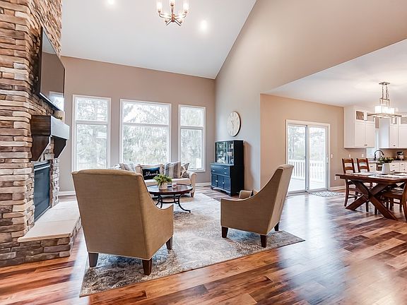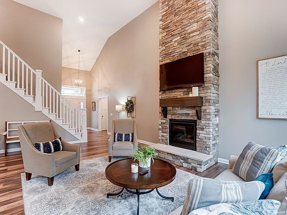 OPEN HOUSE TUESDAY MARCH 17TH 5:30-7:30 CHECK OUT THE VIDEO TOUR! 1 year old 5 bdr/3.5 ba MASTER MAIN 2 story on FULL FINISHED WALKOUT BASEMENT. Open kitchen with painted cabinets, GRANITE countertops, and stainless steel appliances. Gorgeous vaulted living room with stone to ceiling fireplace. Luxurious master suite with ceramic walk in shower, double sink vanities with GRANITE countertops, and walk in closet. IMPRESSIVE WALKOUT BASEMENT with wet bar, large open living space, 5th bedroom, and extra room. Upstairs includes 3 good sized bedroom and large bathroom. Additional features include trex deck, large patio, Andersen windows, high efficiency HVAC, and wooded culdesac lot. Home is immaculate!
