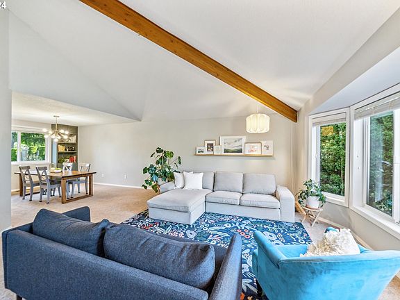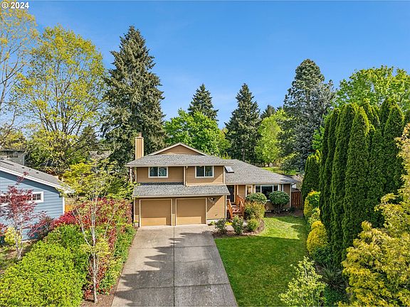 Magnificent tri-level on a picturesque 1/4 acre lot. This is the one you've been waiting for! Inside, the bright living room boasts an expansive bay window & vaulted ceilings highlighted by an exposed wood beam. Enjoy the updated kitchen featuring custom maple cabinets, engineered hickory hardwood floors, cook island, built-in oven, breakfast nook, & a slider to the backyard paver patio. The refreshed primary suite includes newer engineered hardwoods, a double closet, & an updated bathroom w/ quartz counters, tile walk-in shower, & dual vanity. Outside, the large private backyard is glorious w/ mature fruit trees, raised beds, & even a personal gate to the adjoining Fox Chase Neighborhood Park. Ideal location, walking distance to Graham Oaks Nature Park, the Willamette River, Boones Ferry Primary, & Wood Middle School. Don't miss!