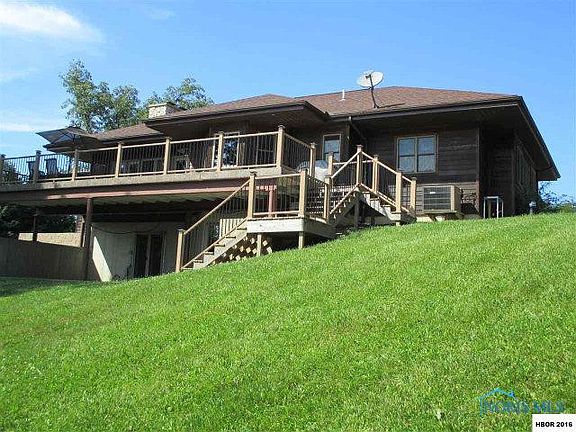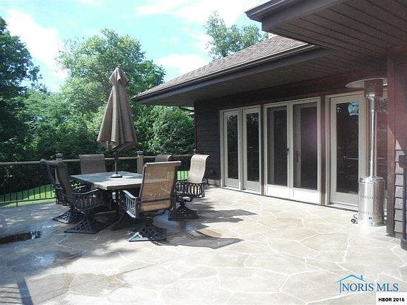 This is a secluded Frank Lloyde Wright design that sits on 3.95 Acres. This design was featured in the 1997 Life Dream House Issue. Enjoy the spacious (40x20) decorative concrete walk out deck that leads down to the patio below that is hot tub ready with wiring and switchbox. Enjoy the huge hearth (fireplace) that is located both in the living room and family room. This home also has a finished garage with epoxy concrete flooring. The basement in this home is bar ready complete with the plumbing. Shed stays with property. Call Regina Vent Realty at 419-294-2000 to see this three bedroom 2 full baths and 2 half baths home that has a great view of the outdoors.