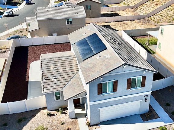 Welcome to your new sanctuary in Crown and Virtue at Tournament Hills, a remarkable community offering resort-style living. This charming two-story home features 3 bedrooms and 2 bathrooms situated in a safe cul-de-sac street. Upstairs, The Primary bedroom treats you to a walk-in shower, a dual sink vanity with stone countertops, and a spacious walk-in closet. Two well-sized bedrooms accompany a laundry room with appliances and a full bathroom. The central hub of the home showcases an open kitchen flowing seamlessly into the dining and living areas. The stylish kitchen boasts a sprawling center island with granite countertops, stainless steel appliances, and elegant cabinetry. Step outside to a backyard that opens to sweeping views providing a serene retreat. This home also comes with "America's Smart Home Technology," LED recessed lighting, Solar Energy Conserving Panels, a tankless water heater, and more for your convenience and modern comfort. Indulge in community amenities including a Private Pool & Spa, Tot Lot, Shaded Picnic Tables, Cornhole Boards, Community Part, playgrounds, and a nearby Tournament Hills elementary school, Mountain View Middle School and Beaumont High School. With easy access to the 10 and 60 freeways, your new home offers both tranquility and accessibility. Effortlessly inviting and move-in ready, this residence invites you to embark on a new chapter in a welcoming community that embodies the essence of refined living. Flexible Qualifications!