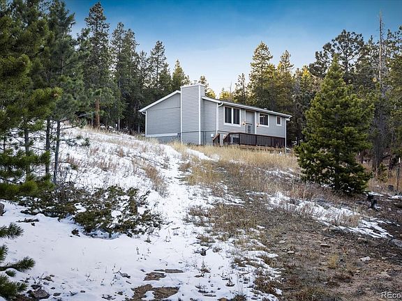 Colorado Mountain Home tucked off the beaten path with easy access. This wonderful home has an open floor plan with a cozy wood burning fireplace, newer hardwood floors and big windows framing forested hillsides and the surrounding meadow. The spacious remodeled kitchen features gorgeous granite countertops. Main level is also host to the primary bedroom with its own 3/4 bath, 2nd bedroom and a shared full bath. Lower level boasts a rec room with newer carpet, 3/4 bath, laundry and guest bedroom with a separate outdoor entry. Work from home with high-speed fiber optic internet. A expansive and newly refinished deck is perfect for entertaining family and friends in the fresh mountain air. Another covered deck is a lovely spot to relax listening to the gentel sounds of a seasonal stream. The road is county maintained and on the school bus route. Come up to one of the Front Range's favorite canyons and live where you play!