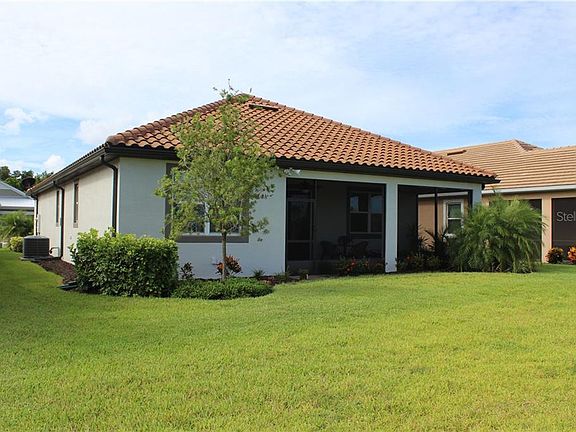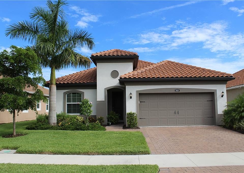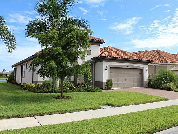 Welcome to the Renaissance at Welland Park, this Spanish style home was built in 2017 and offers endless upgrades and options. This home sits on the community's largest lake - a view that you can never get enough of. Walking into the house you will be drawn to the upgraded plank tile flooring that flows through the entire home. This open concept floor plan features two bedrooms, two bath, a study and a two car garage. In the kitchen you will find upgraded Whirlpool appliances, granite countertops, two tone cabinets and a beautiful backsplash that really ties everything together. This home also features an oversized lanai perfect for enjoying the view of the lake. Conveniently located to all major roadways, you are given easy access to shops, restaurants and beaches. This community is perfect for all ages from pickle ball courts to a playground, fitness center, pool and Jacuzzi, this amenity center has it all. call to schedule your private tour today.