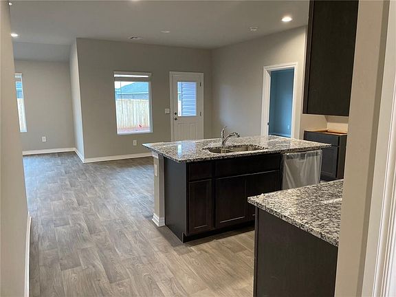Located in the charming, small town of Mustang, OK. The well-appointed Denton plan is a single-story home offering 1,574 square feet with 3 bedrooms, 2 bathrooms, and a large living area. It features a beautiful open kitchen with gourmet features including, a fantastic island with an overhang for seating, beautiful cabinetry, granite countertops, Whirlpool Stainless Steel appliances, a gas range, and much more. The extra-large dining & family room are open with lots of natural light coming in off the rear of the home. The primary bedroom and ensuite, which is located off the living room, offers great optimal privacy, extra-large walk-in closet, and a large bathroom with a double undermount sink vanity with marble top. Additional features include a rear covered patio, privacy fence, fully sodded yard, a professional landscaping package and sprinkler system. Estimated completion Fall 2022.