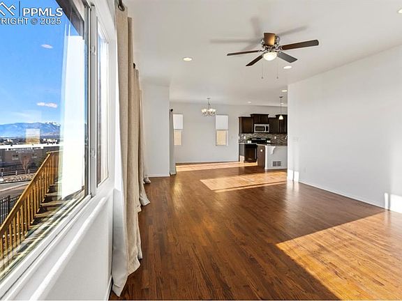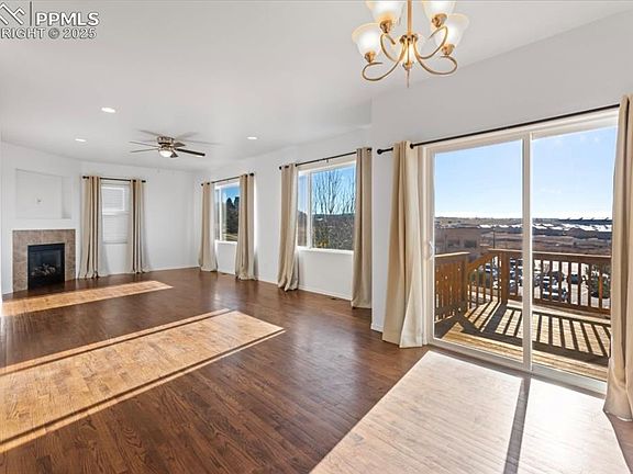 Stunning home in desireable and sought-after Northgate area of Wildwood Ridge, this home offers a perfect balance of comfort and convenience. Situated on one of the rare lots that offer near-panoramic views of Pikes Peak, the Front Range and city lights. Enjoy easy access to top destinations, including USAFA, popular shops like Scheels and Bass Pro, great dining options such as In-N-Out, Flying Horse Steakhouse, and Torchy’s Tacos, plus entertainment hubs like Boot Barn Hall, Ford Amphitheater, and Top Golf. Fitness centers, scenic running trails, and award-winning District 20 schools are just minutes away, with seamless access to I-25 and Powers Blvd. Key Features You’ll Love. Smart Home Ready: Ring doorbell & video camera and Nest thermostat. HOA approved backyard fence to keep your animals safe. Comfort & Efficiency: Central air conditioning and washer/dryer on the upper level. Stunning Interiors: Light-filled open open floor plan with warm wood floors and a cozy fireplace. Gourmet kitchen featuring granite countertops and a stylish tile backsplash. Fresh paint. Step onto the balcony, equipped with a remote-controlled awning, and soak in breathtaking views of Pikes Peak, the mountain range, and city lights. Relaxing Retreats: Luxurious master suite with a soaking tub, freestanding shower, granite vanity, and walk-in closet. Finished lower level family room with a walk-out to stunning views. Ideal Location: Steps from the neighborhood greenbelt and playground, this home invites you to live comfortably and explore all that the vibrant Northgate community has to offer. Don’t miss the chance to call this beautiful property home!