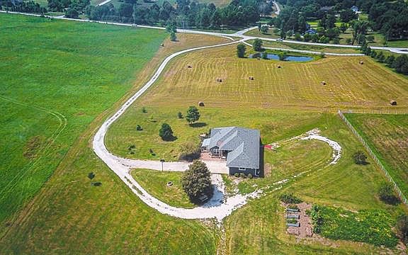 Views for miles, wake up to gorgeous sunrises and end your day with fantastic sunsets. LOCATION! 25 min to Kansas City, 25 min to the Stadiums, 25 min to Smithville Lake! Liberty Schools. This newly reconfigured and remodeled 4 bedroom (5th non-conforming) 3 bathroom craftsman farmhouse features a large chef's dream kitchen, spacious primary bedroom with spa like bathroom featuring freestanding bathtub and glassed in shower all custom tiled. 20 acre beautiful farm, large barn with enclosed area and a covered equipment or stall area. 2 large animal sheds with fencing for cattle, horses, goats and chickens. True in-law space or apartment with 1 bed, 1 non-conforming bed, newly tiled shower, full kitchen and separate laundry with attached heated garage and separate entrance in the basement. Home features storm cellar and plenty of storage space. 3 apple trees, 1 peach tree, large garden area with 3 raised beds, thornless blackberries and blueberries.