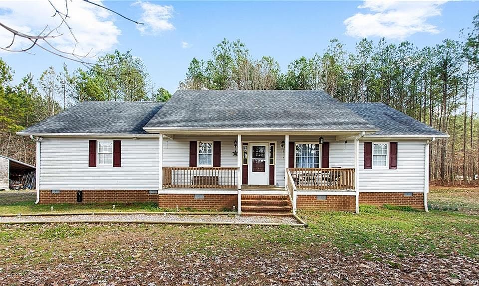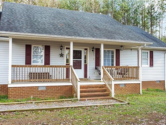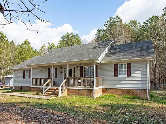 Nestled on 3.17 acres, this laid-back rancher is a quintessential country retreat! Savor the outdoor air on a wide, covered front porch - or grab a cup of coffee and sit in a sunny spot at the breakfast bar. A lovely window over the kitchen sink not only allows a flood of natural light, but also a view of the expansive yard. Fenced and set amongst loft pine trees, the backyard invites fireside chats and is the perfect backdrop for entertaining. Well kept laminate wood floors and vaulted living room ceilings make the space feel open and airy. Just a few minutes from Southside ES and just over a 10 minute drive to one of the area's best farmers' markets and convenient to I-85.