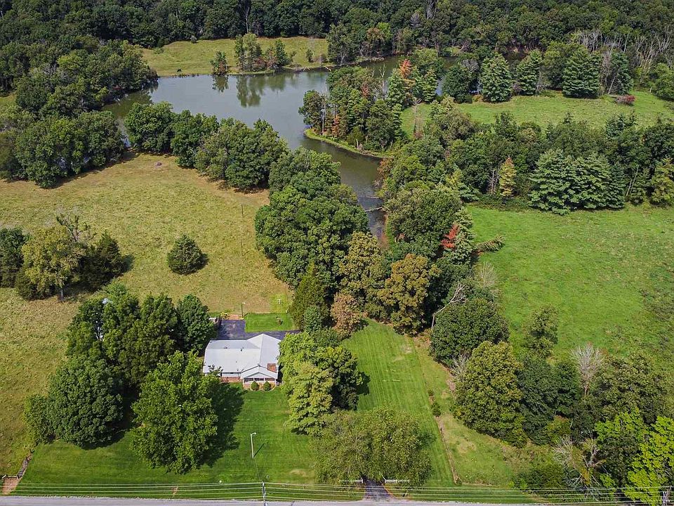 This property has it all! A 7.5 acre stocked lake (bass, bluegill, channel cat) is surrounded by 52.45 acres of lush woods and pasture. The property is fenced to accommodate livestock. This is a haven for wildlife and humans! The 1900 square foot 3 bedroom, 1.5 bath ranch has spacious living areas which include a wood burning fireplace. Huge bedrooms are a bonus. An attached garage has space for 2 cars and more. Outdoors, there's a wonderful 24' x 45' Morton pole barn plus another building perfect for a workshop and livestock shelter. The location is ideal! This home is conveniently located only 1.9 miles from Walmart, Rural King and Rt 57. If you want the feel of the county with all its amenities, this property is for you. Unique and Rare!