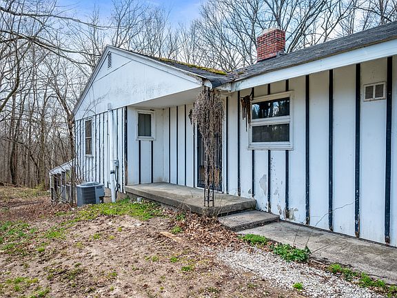 This project could become your dream property! Over 13 acres of beautiful, hard to find, wooded, rolling hills overlooking the Big Blue River. The views are spectacular! This property has so much potential! Hardwood floors under all carpet on main level. Large windows in great room with stunning, elevated views of Big Blue River nature, trees and wildlife. Full size walk-out basement with a fireplace & bathroom. Furnace & Water softener replaced within the last 2 years. Pool table & Chest freezer in basement are negotiable. Recliner does not stay. *As-Is Property. Several barns/sheds/shelters with considerable debris & "junk". Seller has cleaned up property to best of their ability. No further junk removal will be done.