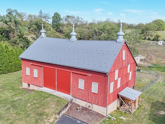 THIS ENCHANTING 24(+) ACRE FARM RETREAT is truly one-of-a-kind and offers endless opportunities. Old world charm and modern convenience merge beautifully and a peaceful country lifestyle awaits. Located in rural Washington County, MD near Williamsport and the Conococheague Creek, the beautifully updated and maintained property includes a 3 bedroom, 2.5 bath Cape Cod dwelling, with nearly 3000 finished sq. ft which showcases solid 2x6 construction, spacious rooms, and remarkable architectural details including antique fireplace mantles, hand-hewn barn beams, a rustic banister, and two fireplaces (one wood burning and one propane). Thoughtful updates such as a geothermal HVAC system, renovated kitchen and baths, updated flooring, and a 50-year metal roof, bring comfort and sustainability together in perfect balance. From the over-sized 2 car garage (complete with EV Charging Station) you'll enter the open concept main level which includes mudroom, kitchen, dining room (which opens to a balcony overlooking gently rolling pastures and mountain views), great room with fireplace, formal living room, half bath & laundry, and primary bedroom with walk-in closet and full bath; on the upper level are 2 large bedrooms and 2nd full bath. The lower level features a walk out ground level family room with brick propane fireplace with antique mantle, and a stunning handmade bar created from one of the barn beams. Adjoining the family room is an exercise room with rubber floor and recessed lighting and a large utility/storage room. The historic bank barn (circa 1880-1910), recently updated with electricity and Wi-Fi, is fully functional for animals and ideal for memorable gatherings and events. The land blends pasture, woods, and open spaces suitable for gardens, additional entertaining areas, horses, livestock -- or even a Christmas tree farm. Nature and wildlife lovers will delight in the whitetail deer and turkeys that wander through the meadows. The 15-acre pasture currently yields orchard grass hay and includes a fenced 1-acre section with two east-facing Amish-built run-in sheds (one with electric, water, and a tack room) plus a chicken coop--turnkey ready for your animals. Completing this serene setting is a separate art studio/workshop/storage building, with loft, perfect for creative or entrepreneurial pursuits. From peaceful country living to small-scale farming or event hosting -- this property truly offers endless possibilities. And as an extra bonus, if you love fishing you can walk (or golf cart) a short 1/4 mile to the Conococheague Creek. If you've always dreamed of owning an event destination...your dream can come true here where you can use the barn and the open field plus firepit area to host private or public gatherings such as weddings, farm dinners, or retreats...just minutes from commuter routes and 70 miles west of Washington, DC and Baltimore...yet worlds away from the hustle and bustle.