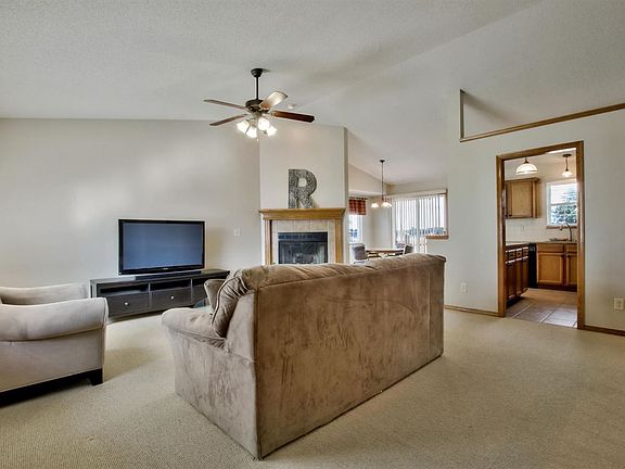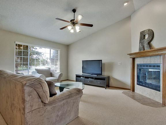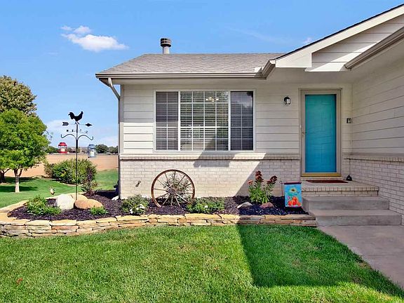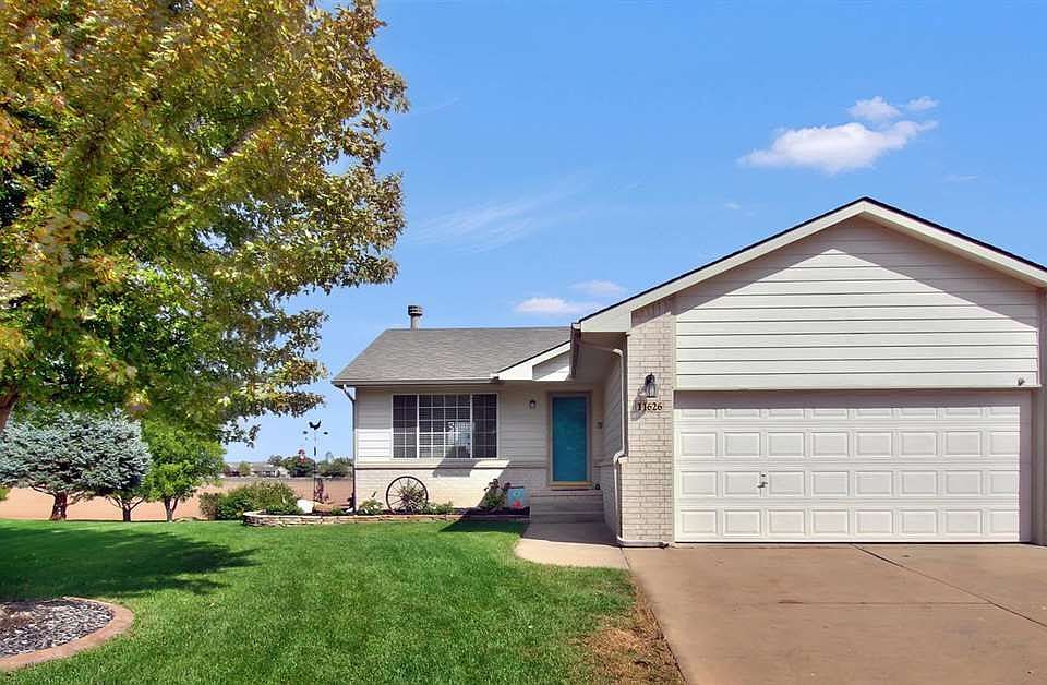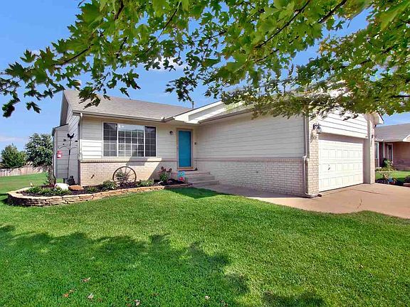 Darling 3 BR, 3 BA ranch nestled on a large cul-de-sac lot with an East-facing backyard is move-in ready! Enjoy nice curb appeal, great landscaping, fresh paint in the main level living areas, an open floor plan, vaulted ceiling, neutral decor, a wood burning fireplace, fully finished viewout basement, wood deck, sprinkler system and an irrigation well. The well appointed kitchen comes with all the appliances and showcases slab granite counter tops, an eating bar, touch faucet and upgraded cabinet hardware. Entertaining is made easy in the viewout basement featuring a rec room, bedroom, bathroom and storage; you'll love cuddling up for movie night or watching the big game with the projector and mounted screen. Conveniently located in the desirable Maize School District, this super clean home offers rarely found amenities for this price point. This is one you don't want to miss!
