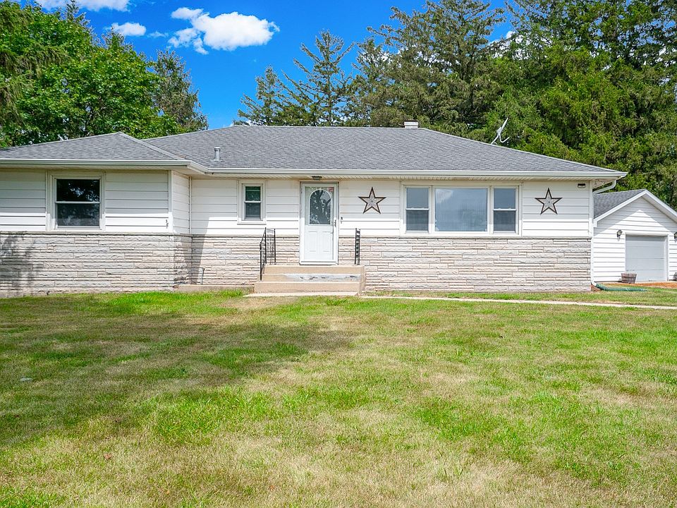 Enjoy Country Living with its wide-open views and peaceful surroundings on 5 acres. Ranch style home is comfortable offering sizable bedrooms. The living room and dining rooms are open to each other and the kitchen offers plenty of cabinets and has seen new counters, sink, and cooktop in 2021. The bathroom was updated in 2015 and there are an abundance of closets throughout the home. The roof was replaced in 2007, Windows in 2009, new well 2011, water filtration 2012, the Furnace and Central air 2013, new doors in 2021. Put up an outbuilding, bring the horses and chickens or all of the toys, this type of property does not come available often. The owner has never lived in the house and is being sold in AS IS condition. There will be an easement agreement with the neighboring brick home. Tile lines will be located before closing as nothing can be built over them. Taxes will be adjusted for the 5 acres.