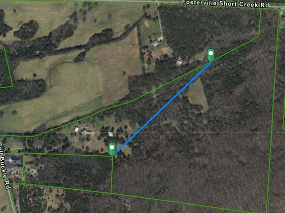 Property has been surveyed and split off of 73 acre parcel (TRACT 2 consists of 58.17 acres for sale and is LAND ONLY) - home is located on Tract 1 (not for sale). Creek, spring & cave located on property; no current road access but there is 210' access area off Fosterville Short Creek Rd. City water access at road, land has not had soil test/perk area determined, and there are small clearings throughout property, which extends up Soapstone Hill. Selling "as is".