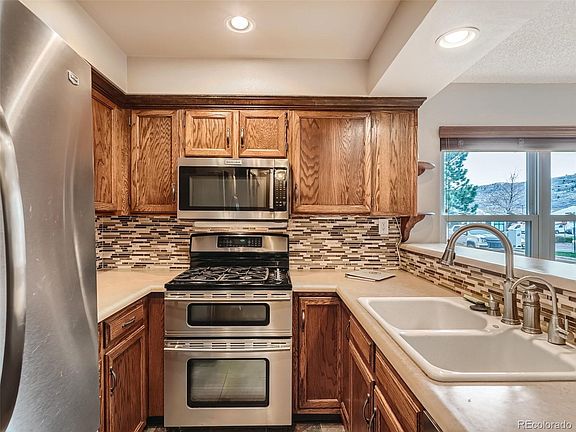 End unit Townhome in excellent condition, Vaulted ceilings, Open Floor Plan, Lots of Light, Wood Burning Brick Fireplace & Built in Shelves in Living Room, Raised Breakfast Bar, Slide out shelves in large pantry, Wood Laminate Floors, All Appliances Included, New Paint, Spacious Master Bedroom with Double Closet, Central Air Conditioning, 2 Car attached garage, Extra Bump out Storage space in Garage plus Workbench, Private Walled Patio Space with views of the foothills.