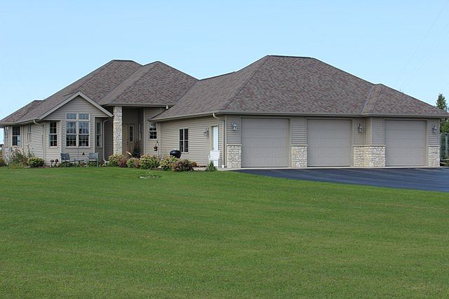 Extremely well kept beautiful home on 5+ acres at the end of a culdesac with a shared partial driveway and partial blacktop, doesn't get much more private than this! The home has a large master bedroom with a private bathroom and walk-in closet. Additional 2 bedrooms, guest bath and laundry room all on the 1st floor. Enjoy additional space in your 3 car heated garage or sit out on your cedar deck and gaze out onto your large well maintained lawn. The great room and dining room are combined on the dimensions. Great room has a pellet stove for those chilly Door County nights. The basement is partially done as well as the basement bathroom to be finished by new owners. Come and take a look!