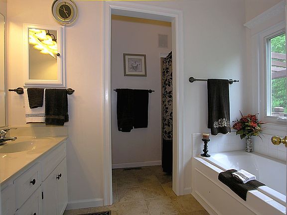 - Whirlpool Tub, Kitchen Island, Stained Cabinets