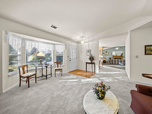 MOVE IN READY home offers a welcoming bright open floor plan with high ceilings, a spacious family room, attractive fireplace in the living room and a HUGE laundry room with ample cabinets for all your storage needs! Open kitchen includes breakfast bar! Sliding door from the dining area leads to a covered back patio perfect for family BBQs or enjoying your morning coffee while watching the sunrise. Mature landscaping with plenty of room for kids and animals to play. Newer HVAC and the two outbuildings have power. There is also and abundance of space for RV/boat parking. A MUST SEE!