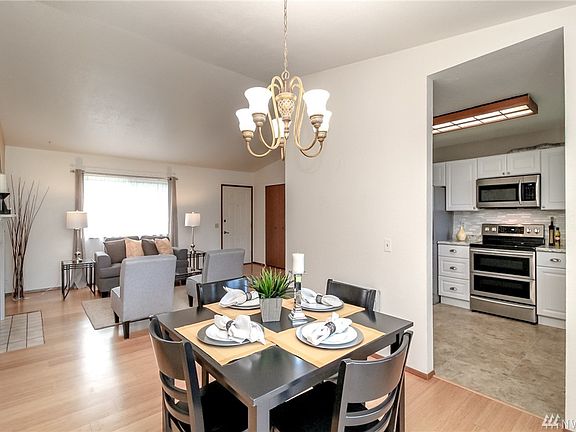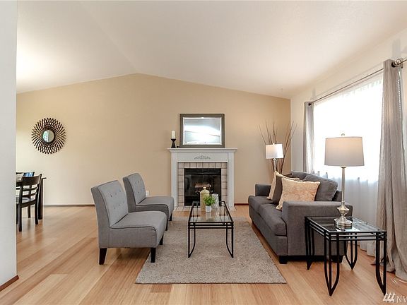 Easy living in this updated rambler on a quiet cul-de-sac near Boeing and shopping. Move right in and enjoy your updated kitchen with white cabinets, stainless appliances, nickel hardware and a beautiful glass/tile backsplash! Living and Dining are bright and expansive with vaulted ceilings and a warm wood-burning fireplace for those cold nights. The huge, fenced rear yard will be a delight for bbq's and a hot tub for cool evenings. Easy 50-year roof, dbl pane windows and bamboo floors!