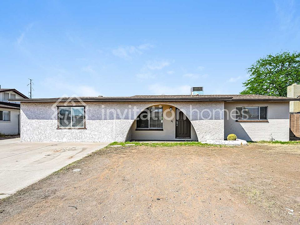 Home Features and Amenities: Air Conditioning, Covered Porch, Fenced Yard, Granite Countertops, Long Lease Terms, Patio, Pet Friendly, Primary Bedroom on Main, Single Story House, Smart Home, Stainless Steel Appliances, Tile, W/D Hookups, and professionally managed by Invitation Homes.