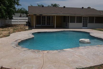 Charming pool home located near Wineville Park. Living room with fireplace. Great sized bedrooms. Backyard features covered concrete patio & sparkling pool. 2 car attached garage.