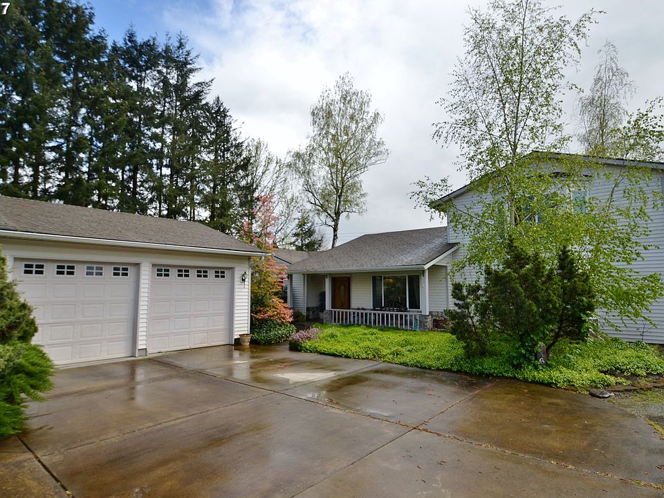 Lovely home on 1 acre between Canby & Oregon City. Custom addition in 1998 was finished w/detail, modern decor & quality materials. Beautiful spacious kitchen, open dining-living room w/ frpl., luxurious master suite & sunroom were added to existing 3 bdrm. 2 bath. Private backyard w/huge patio & 2 barbeque areas. 25x25 detached finished garage w/floored attic (1998). Producing Orchard. 24x36 metal shop/2 stalls, fenced pasture.