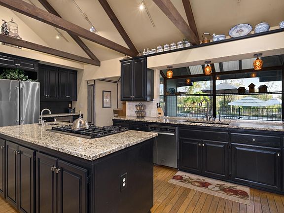 A taste of Shaver Lake style home with a lake view nestled in Clovis! An entertainer's paradise with plenty of outdoor space including a sparking pool, multilevel stamped concrete decking for all of your guests to enjoy, and a view of wolf lakes! Indoors you will find a large kitchen with top of the line appliances featuring double ovens, wine fridge, plenty of counter space and a pantry room. The master retreat features a vaulted wood ceilings, sitting area w/french doors leadinf to patio, an oversized bathroom w/ large walk-in shower and separate oval tub. There are 3 other bedrooms w/ adjacent bathrooms, formal dining/ living room, and wet bar. Upstairs is the loft/game area w/ built-in shelving and a private door leading to the movie theater w/ comfortable elevating seating. This is a must see in person, make sure yu schedule plenty of time for your private viewing.