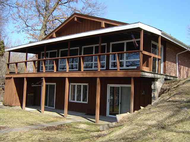 Incredible view of the main lake over the 181 ft of waterfront. Enjoy the view from inside with large windows in the large open living room with cathedral ceiling and fireplace. Lots of storage throughout.