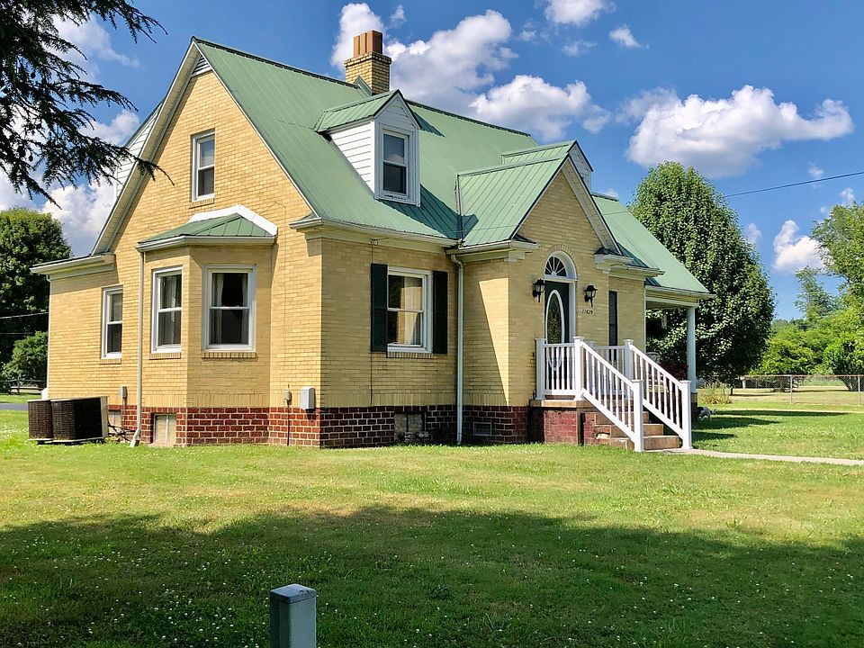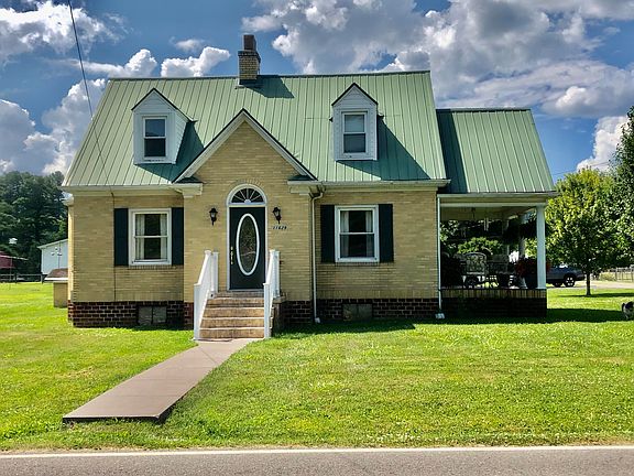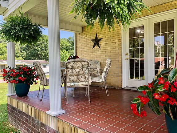 There's no place like home! This Yellow Brick Cottage with a green roof, trimmed in white makes this storybook house the home of your dreams. Original doors have antique crystal doorknobs. Vintage baseboards, arched doorways and high ceilings accent the dining room and living room while reflecting the character and charm of this 2 story house, the living room features a bay window and a fireplace with new gas logs. From the dining room, French doors open to a covered porch complete with a porch swing. Full basement with walkout door has a washer and dryer but no worries, you have a bonus on the first floor with a stacked washer/dryer unit next to the first floor bedroom and bathroom. Up the stairs you will find 2 more bedrooms and a full bath. The first of the 2 bedrooms is larger and has several doored attic storage spaces. The second upstairs bedroom has a small bonus room that could be used for a nursery, small bedroom, office or storage. Situated on a perfectly level lot, this property has a paved drive with lots of area for additional cars, sidewalks and a workshop building with power and heat. A one space carport is attached to the building. Plus it includes a dog lot that is covered. Fresh paint throughout the interior, just move in and say There's no place like home! This property is one you don't want to miss!