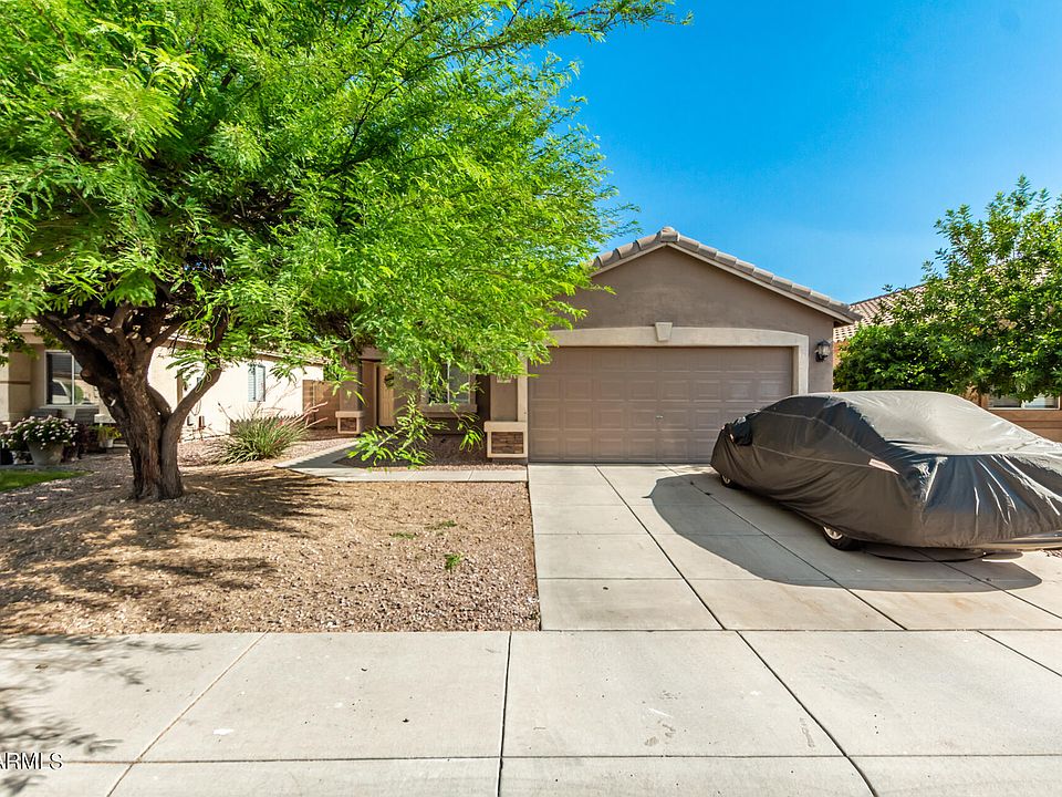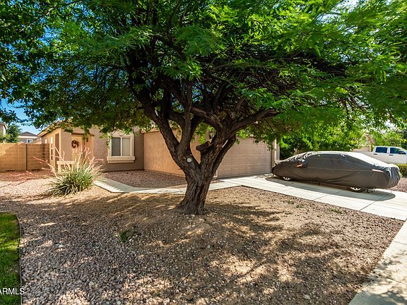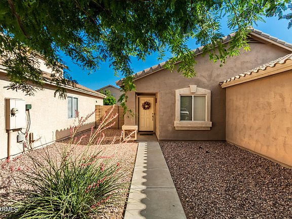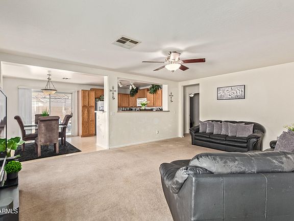 This charming single-level home is in the peaceful and very desirable subdivision Agua Fria Ranch! Offering 3 bedrooms, 2 bathrooms, a 2 car garage, and a low-maintenance front yard. Come inside to discover a large open living room with neutral touches throughout. Features include window treatments, carpet & tile in all the right places, eat-in kitchen, spacious counters, wood cabinets, and a sliding door to the backyard. Lovely primary bedroom boasts a walk-in closet, large bay window & full bathroom for added comfort. Enjoy the perfectly sized backyard with a patio to relax after a busy day. Front & backyard sprinkler/drip system installed. North/South Exposure! Only minutes away from schools, shopping, dining, and entertainment.