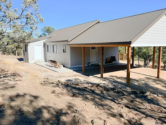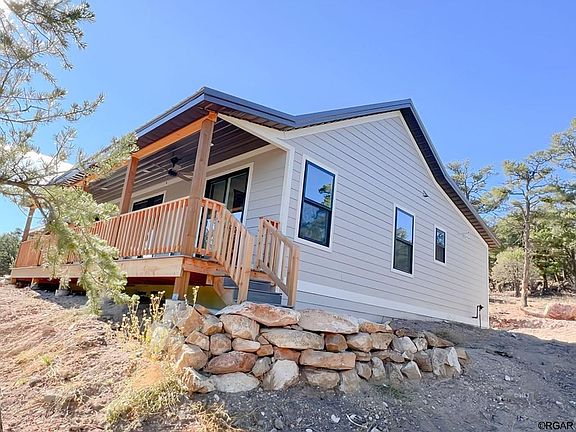 NEW BUILD in No-HOA Locale! This cozy cabin is ready for your decorative touches. Pulling up the drive, you'll note the large, covered area just outside the home for car parking; additional siding material is available to enclose. Or maybe you'll want to use this area for outdoor relaxing and entertaining. Inside, all appliances are brand new and never used, including the refrigerator, stove/oven combo, microwave, dishwasher, on-demand water heater, furnace, AND washer and dryer! The airy, cathedral ceilings have been finished in a beautifully stained tongue and groove, with a central ceiling fan and loft storage. The primary bedroom has sliding glass doors to the front covered deck (also with ceiling fans), and an ensuite 3/4 bathroom with a tiled shower. The 2nd bedroom has a full bath across the hall and sliding doors to the front covered deck. This home is solar with a BRAND NEW KOEHLER hard-wired generator installed. The property includes an RV dump station, and a large cistern enhances the well. Close by are the world-famous Royal Gorge, Arkansas River for fishing and rafting, outdoor adventure, tons of wildlife, hiking in the Sangre's or Wet Mountains, or sipping tea on the porch! Starlink internet is in place and can transfer to the new owner. This inviting home has huge potential for a full-time OR part-time owner, with tons of recreation surrounding you. Just a short half an hour from the small mountain town of Westcliffe! Summer festivals, and home town charm!
