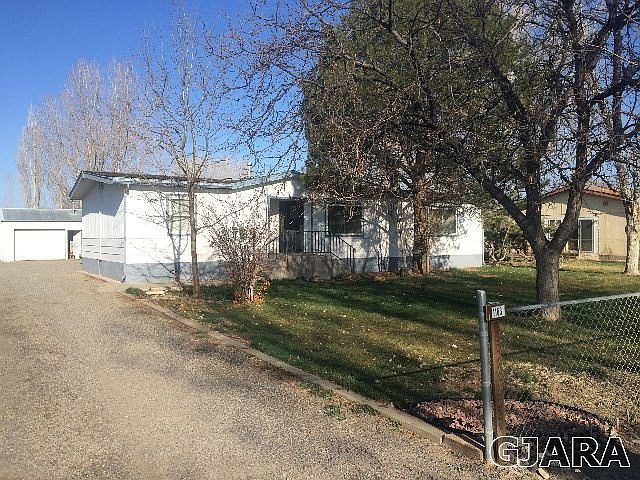 ARE YOU LOOKING FOR A BIG LOT THEN THIS IS THE ONE! THIS PROPERTY IS .63 OF AN ACRE AND COMES COMPLETE WITH HEATED GARAGE/ WORKSHOP, RV PARKING, MATURE LANDSCAPING, AND LARGE COVERED DECK TO ENJOY BEAUTIFUL COLORADO EVENINGS. HOME IS 3 BEDROOMS, 2 FULL BATHS, WITH A LARGE KITCHEN. MANY UPDATES INCLUDING NEWER WINDOWS, NEW ROOF 2012, FRESH EXTERIOR PAINT, LAMINATE WOOD FLOORS, MAIN BATH RECENTLY REMODELED WITH NEW TILE FLOORS. FULLY FENCED YARD WITH FRUIT TREES, LARGE GARDEN AREA, AND NEW IRRIGATION PUMP. ALL INFO SUBJECT TO ERROR OR CHANGE BUYER TO VERIFY. MANUFACTURED HOME TIE-DOWNS FOR FOUNDATION.