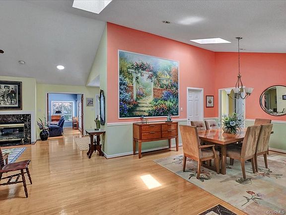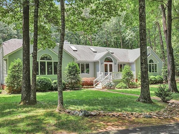 Welcome Home to this Peaceful & Spacious contemporary perfectly tucked away in the desirable neighborhood of Fox Downs lined with picturesque trees and a beautifully landscaped lawn. This 3 bedroom, 2.5 bath contemporary sitting on 3.2 acres has been meticulously maintained for the next owner. You will LOVE the Open foyer that flows into the Dining and Family Room with Vaulted Ceiling, Skylights, Hardwood Floors & Fireplace! Perfect for Entertaining Guests or for Family Night! Huge Kitchen with custom wood work, Island & Eat-In Kitchen Area with a perfect view of the backyard & access to Deck! Relax in the Florida room that opens up to the screened in porch and deck that runs along the entire back of the house. 3 perfectly sized bedrooms, all with large closets, bathrooms and carpet flooring . Slip away into the spacious Master Suite with 2 walk-in closets, built-in shelving, an en-suite bath with dual vanity, jacuzzi tub and shower. Detached 2 car garage, shed, and a large paved wrap around driveway complete the outside of the property.No HOA or fees, comcast high speed internet, only 10 minutes to Short Pump and convenient to I-64. MUST SEE!!!