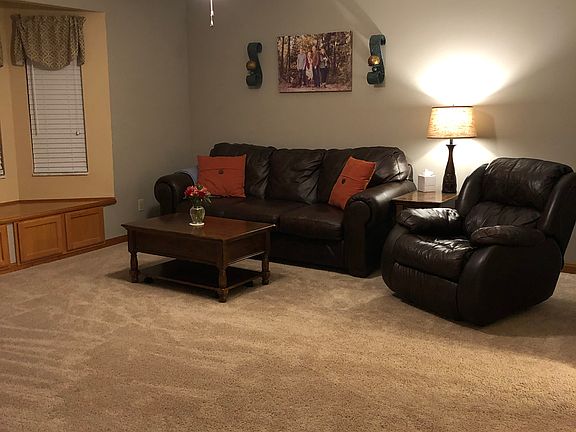 Wonderful 3 bed/2 bath move in ready home. The large kitchen has custom cabinets and with roll out shelves, 2 Lazy Susans, a pantry and a gas stove. The breakfast bar adjoins the dining area with room for a full table. The main floor laundry has a closet, additional shelving, and laundry sink. Master suite has a three quarter bath, walk in closet and plenty of space for furniture. Bedrooms 2 and 3 are good size and have 8' closets. One is extra deep. The living room has a bay window with a window seat that has extra storage. There is a full, clean, dry basement with additional laundry sink, plumbed for future bath, sump pump and water softener. The clean, insulated 2 car garage has attic access stairs. There is an attractive covered front porch and a covered back patio. Patio has a permanent gas line for your grill.