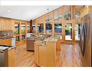 Breathtaking kitchen with soaring beamed ceiling & wall of glass overlooking a private treed canyon. Updating includes stainless appl's, granite, tile, carpeting, paint. lighting, bathrooms and more. Very impressive serene setting with privacy. Near the top of Moon Valley and Cave Park. Here is your Montana get away yet just minutes to schools & downtown.