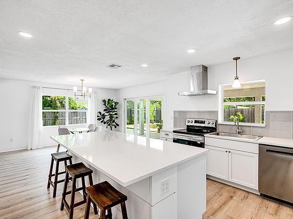 Welcome home to this beautifully rebuilt 4/3 CBS & Complete impact home on a large corner double lot in North Stuart. Living space boasts over 2600 sq feet under air with additional outdoor living space to enjoy paradise! No HOA restrictions and home is on public sewer and water. Quiet and wonderful neighborhood near A-rated schools, restaurants, shipping and downtown Stuart! Designer and builder full remodel done with no corners cut including a beautifully done primary bathroom. Exterior has room for a pool as well as hosts a wonderfully built in fireplug/conversation area. Come and check it out and start enjoying living in paradise with no monthly HOA dues and privacy!