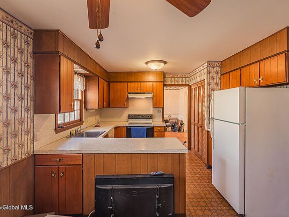 Tucked on the very edge of the city—just seconds from Slingerlands & Delmar (4 minutes from Market 32 in Slingerlands)—you'll find this spacious 4BR, 2.5BA colonial on a beautiful full acre backing up to the Normanskill Preserve. Solid home with great bones and mostly wood floors, a slate entry, family room fireplace, and an inground pool. Attached 2-car garage plus a detached 2-4 car garage offers rare flexibility. Normanskill fishing access just a few driveways away. Minutes to downtown Albany & Capital Hills Golf Course. Home needs updating throughout and is being sold AS-IS.