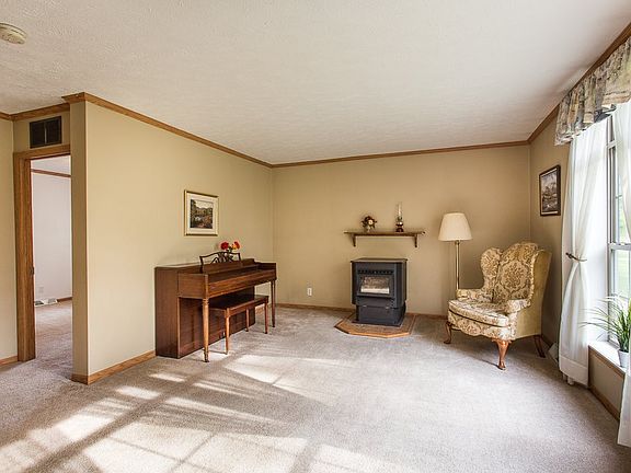 Serene setting for this 2 bed, 2 bath, well maintained home on the peaceful property you have been looking for! This home has a ton of storage space, starting with a ready to be finished full basement with 9 1/2 ft ceilings and an egress window, multiple out buildings and a 3 car garage, featuring a mechanics pit! Complete with a corn pellet burner.WESTERN SCHOOL bus goes by the house. Can be purchased with the 2 adjacent parcels for $145,000. Tax ID's 176-002-04 & 176-002-05. Tiny house is not included but can be purchased for $8,000. (Can hook up to this homes well & septic.)