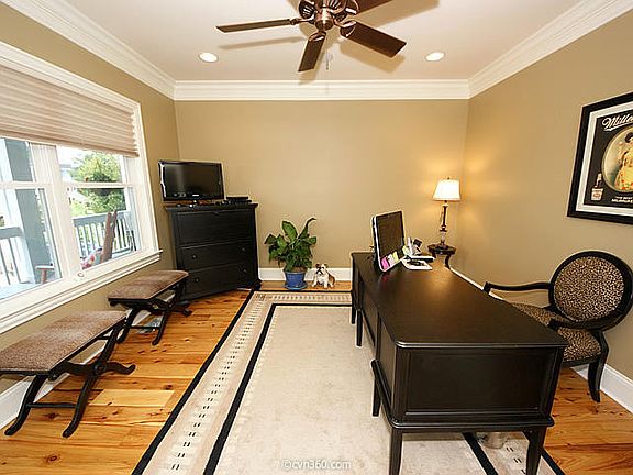 You can tell by the designer touches and fine craftsmanship that no expense has been spared in the construction of this gorgeous home that is within a short walk to a community dock with great fishing and crabbing. The flooring throughout is recently refinished 5 1/4 Australian Cypress except for the marble bath rooms, slate bar floor and the three upstairs bedrooms that have carpet. The entrance is warm and inviting and when you enter the grand family room with its high coffered style ceilings with fan and gas fireplace with built-ins it almost takes your breath away. This home is an entertainer's dream with the open floor plan and gourmet kitchen. There are granite and stainless steel Bosch appliances, including double ovens, microwave, dishwasher and gas cooktop.It has plenty of counter space and custom cabinets. The bar area around the corner has slate floor and beamed ceilings with a wet bar, wine cave and plenty of cabinets for glass wear. The bar opens to a large deck overlooking a very private backyard. The master, another bedroom and office are located on the first floor. The large master has an en-suite bathroom with Travertine marble floors and a steam shower. There is also a whirlpool bath to relax after a hard day's work. Attached to the master bath is a very large custom closet. The upstairs has three more bedrooms with ceiling fans in each one. The home also features central vacuum for easy cleaning. The home sits on a gorgeous lot and with a new fence that is beautifully landscaped. Owners have recently had the home painted, inside and out, and a new lower lever air handler and dual thermostats were installed in 2014. There is over 1,000 sqare feet of decks/porches that provide excellent opportunity to enjoy the lot that is just under acre! There is really too much to tell about this home it truly is a jewel and a must see to really appreciate all the details.