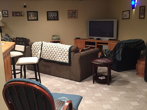 Finished basement with wet bar, laundry room and storage area. Stone gas fireplace in living room. Surround sound in living room and rec room. Fenced yard with storage shed and automatic sunsetter awning over patio. All appliances included.