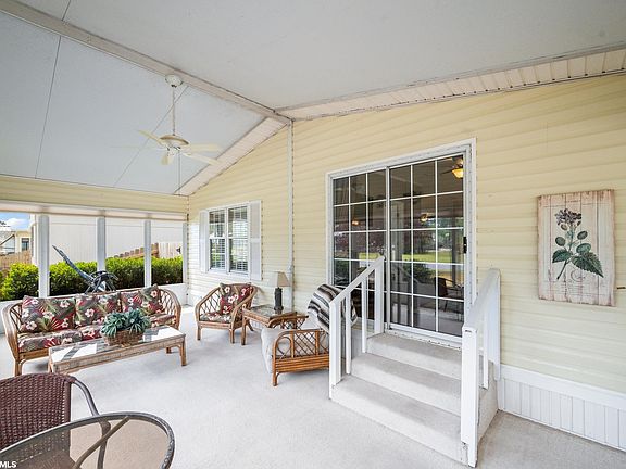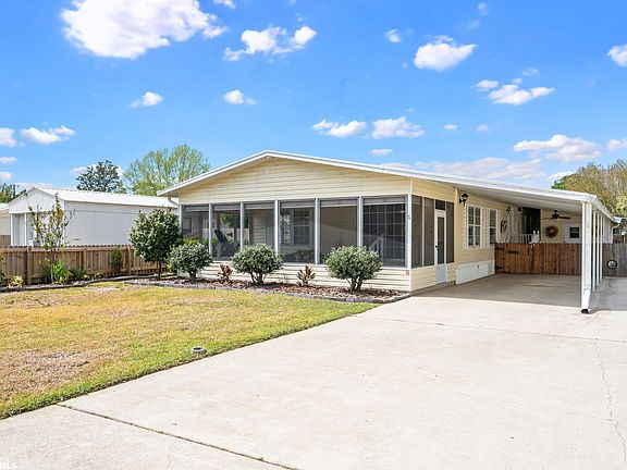 Get ready to fall in love with your new home!! This one is impressive, y'all! Inside and out! New metal roof in 2020 and on shed in 2022. Large screened porches on the front AND the back of the home! There is also a partially covered and fenced area to the side of the home that’s great for entertaining and cooking out. There is large living/dining area off of the open and bright kitchen, as well as a large den that would be a perfect home office. The master bedroom opens out into backyard oasis. The master bath is a room all its own, with a large easy access walk-in closet, private water closet (with handicap bars), and 4x5 walk-in shower (also with handicap bars). So much has been re-done or added onto this home. During 2016-2019, the backyard fence, two new toilets, all sinks/faucets replaced, new ceiling fans, new waterproof vinyl flooring, screened back porch, new kitchen appliances, plumbing redone with PVC, a 3rd bedroom was added, new lighting and paint throughout, beautiful new master bathroom doors, doggie door, and RV 50 amp breaker/outlet added. Since 2020, a new doorbell, replacement sub panel, front screen door, plantation shutters, and Gorgeous landscaping!! If we listed all the plants that have been thriving in the backyard, we will run out of space, but it's a must see! It also includes an easy-to-use Rainbird irrigation system that operates on well water! The workshop is huge at 22x8 and comes with a full-size refrigerator and a window a/c unit. In addition to one covered parking spot, the extra wide driveway has ample room for vehicles and an RV (hookups already added!). Spanish Cove amenities include trash, private security, bayside pool that is heated and covered in the winter, bay access and beach, tennis courts, lots of community activities, gym, and playground. 15 min to Perdido Key and NAS. Minutes from Pensacola, Orange Beach, Foley, and Gulf Shores.
